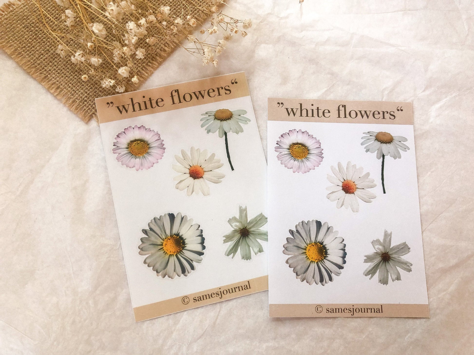 Flower stickers, white, daisies, transparent, stickers, flowers, blossoms -samesjournal