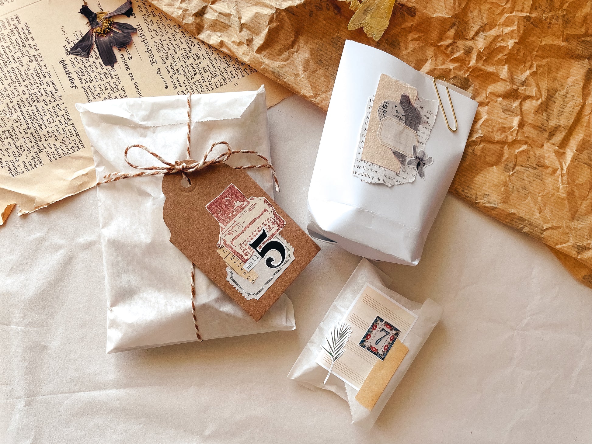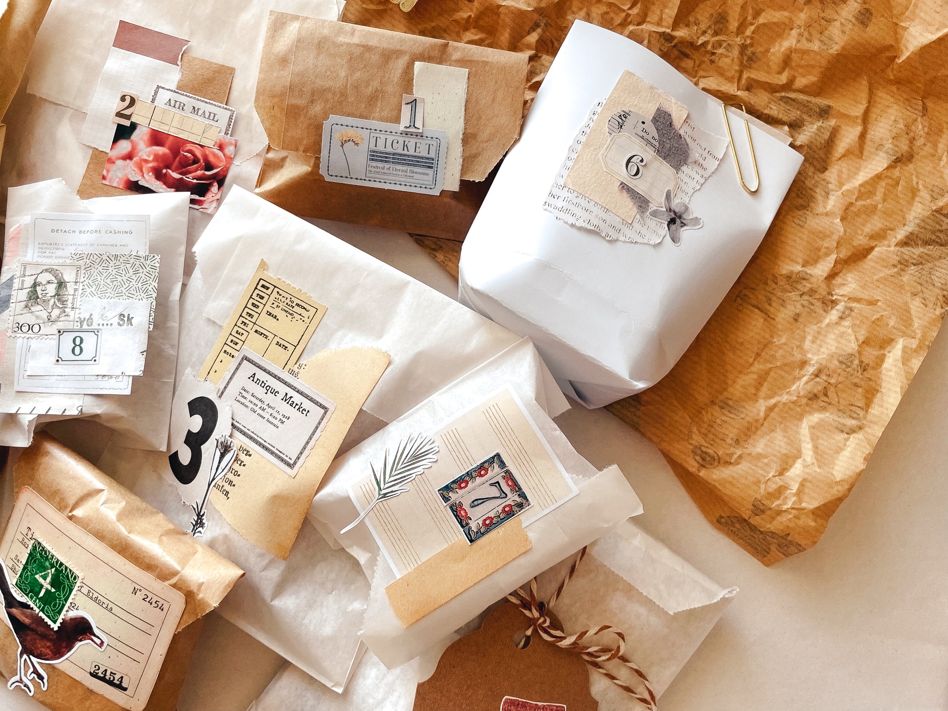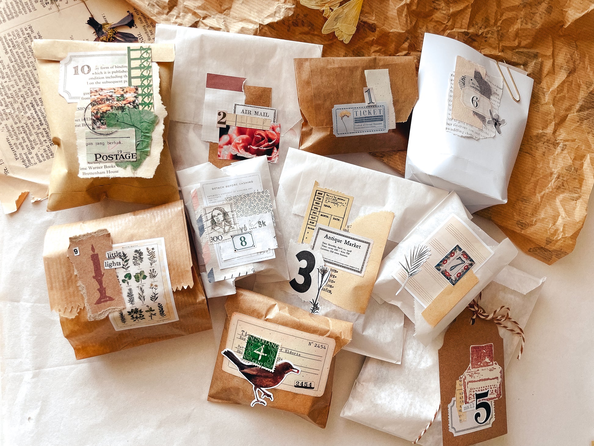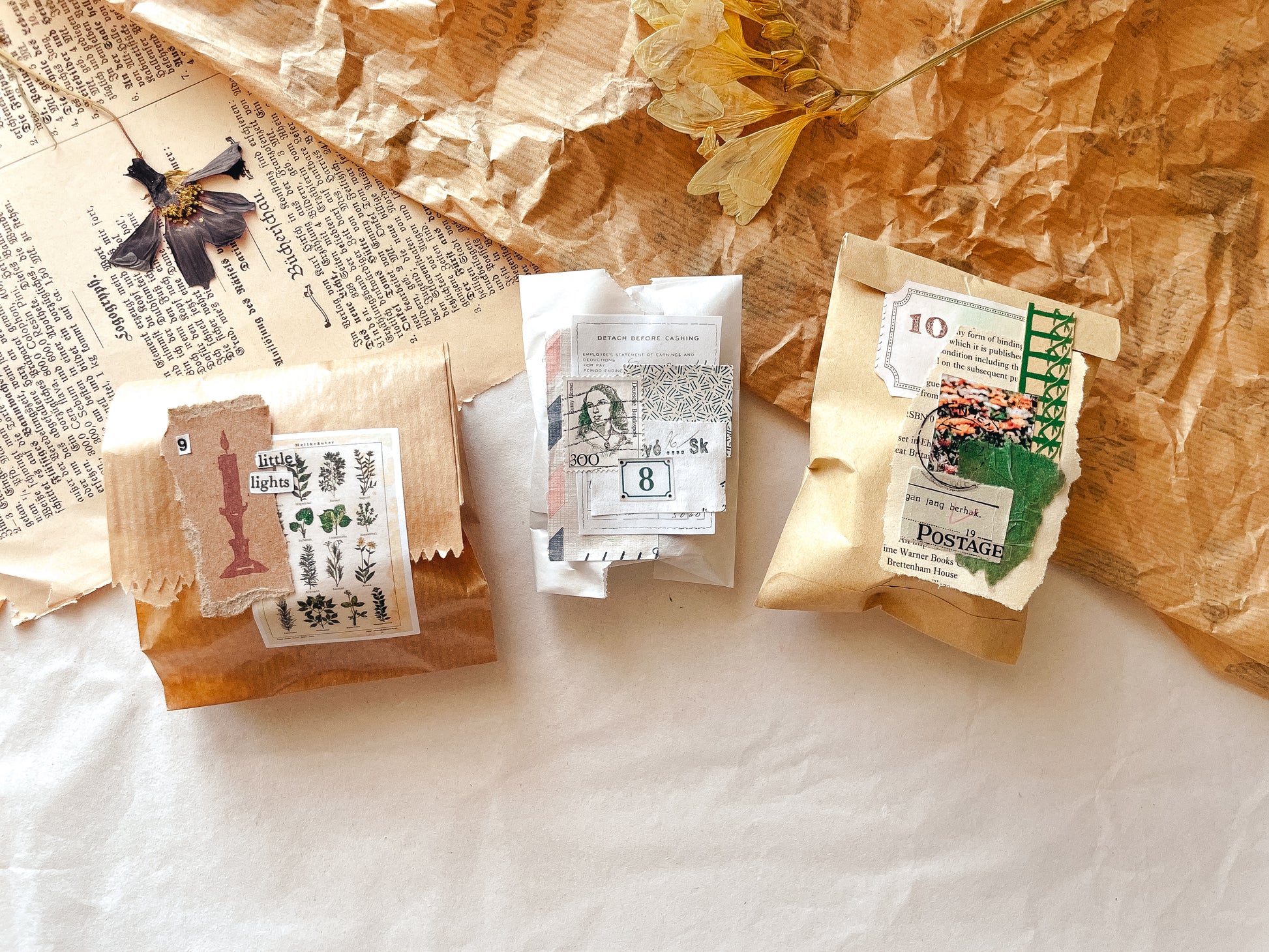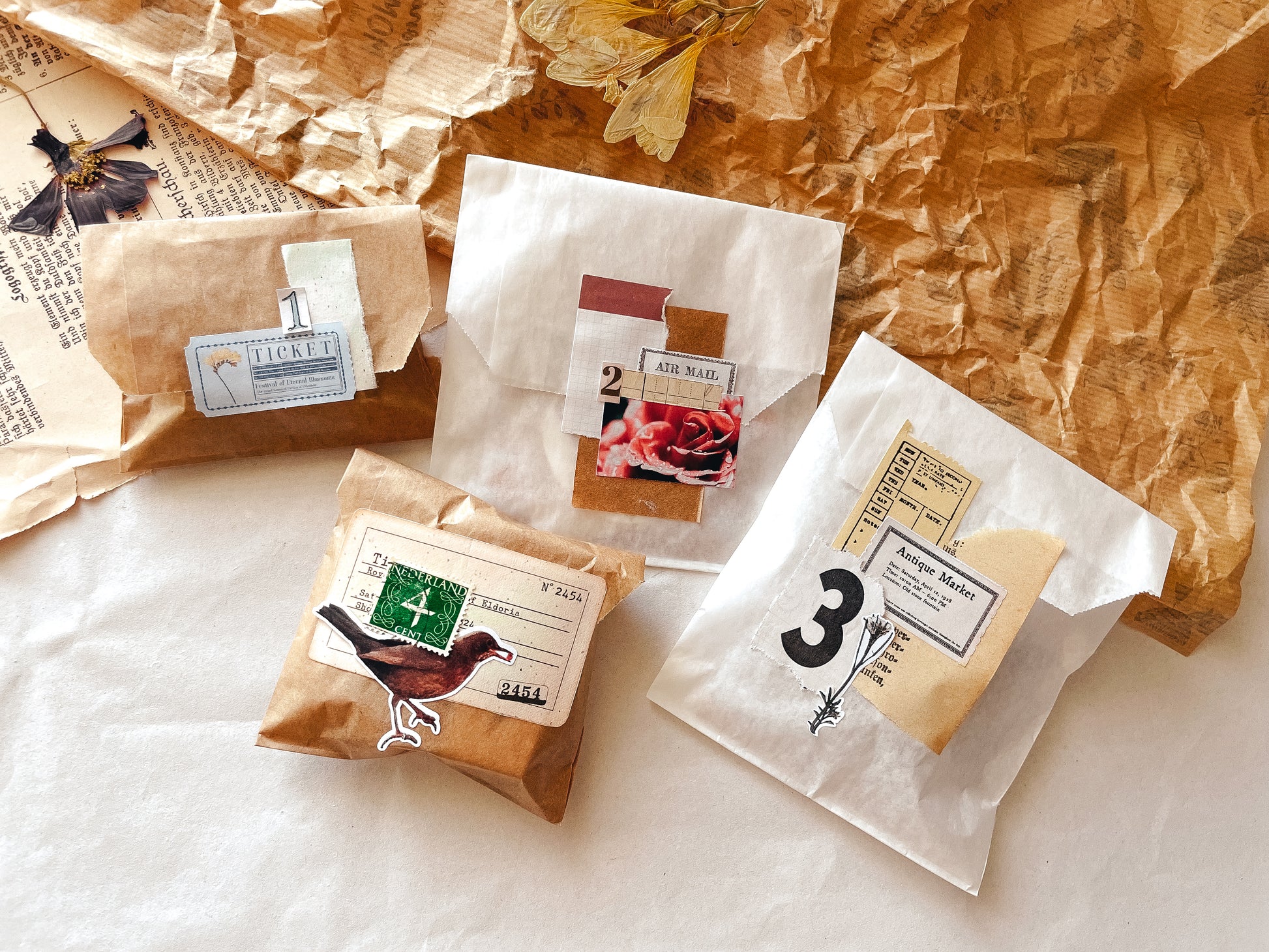 Surprise bags with products from the flower stationery boxes.