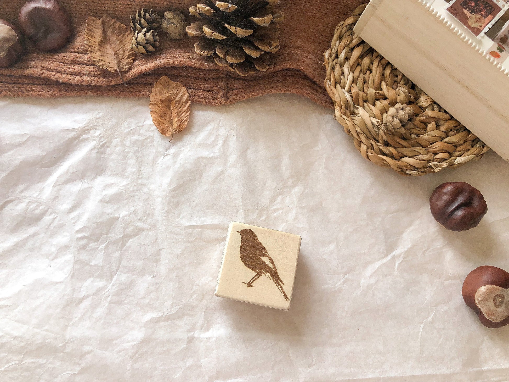 II wooden stamp bird, autumn, stamp, laser stamp, samesjournal