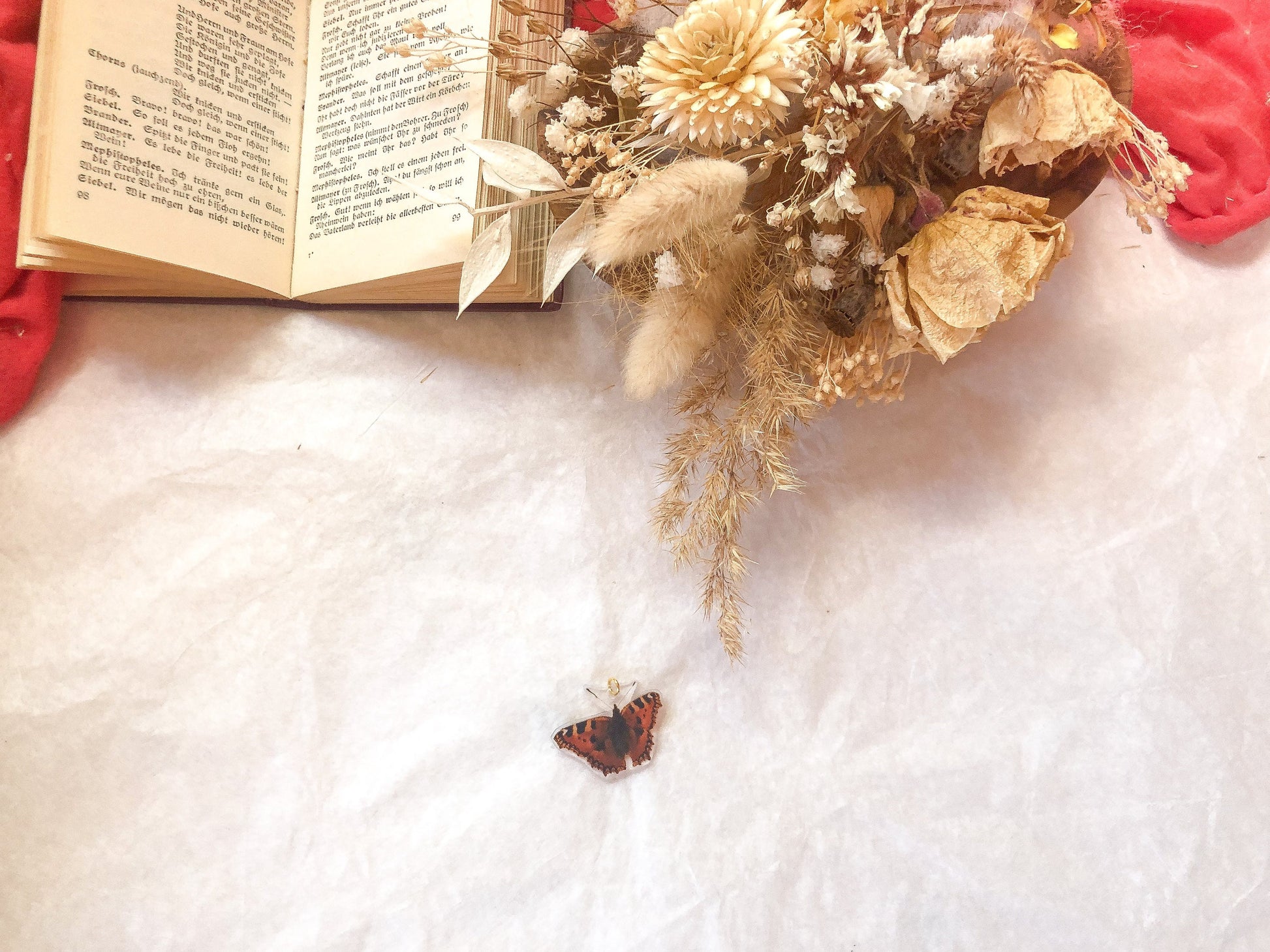 A homemade pendant with a butterfly motif.