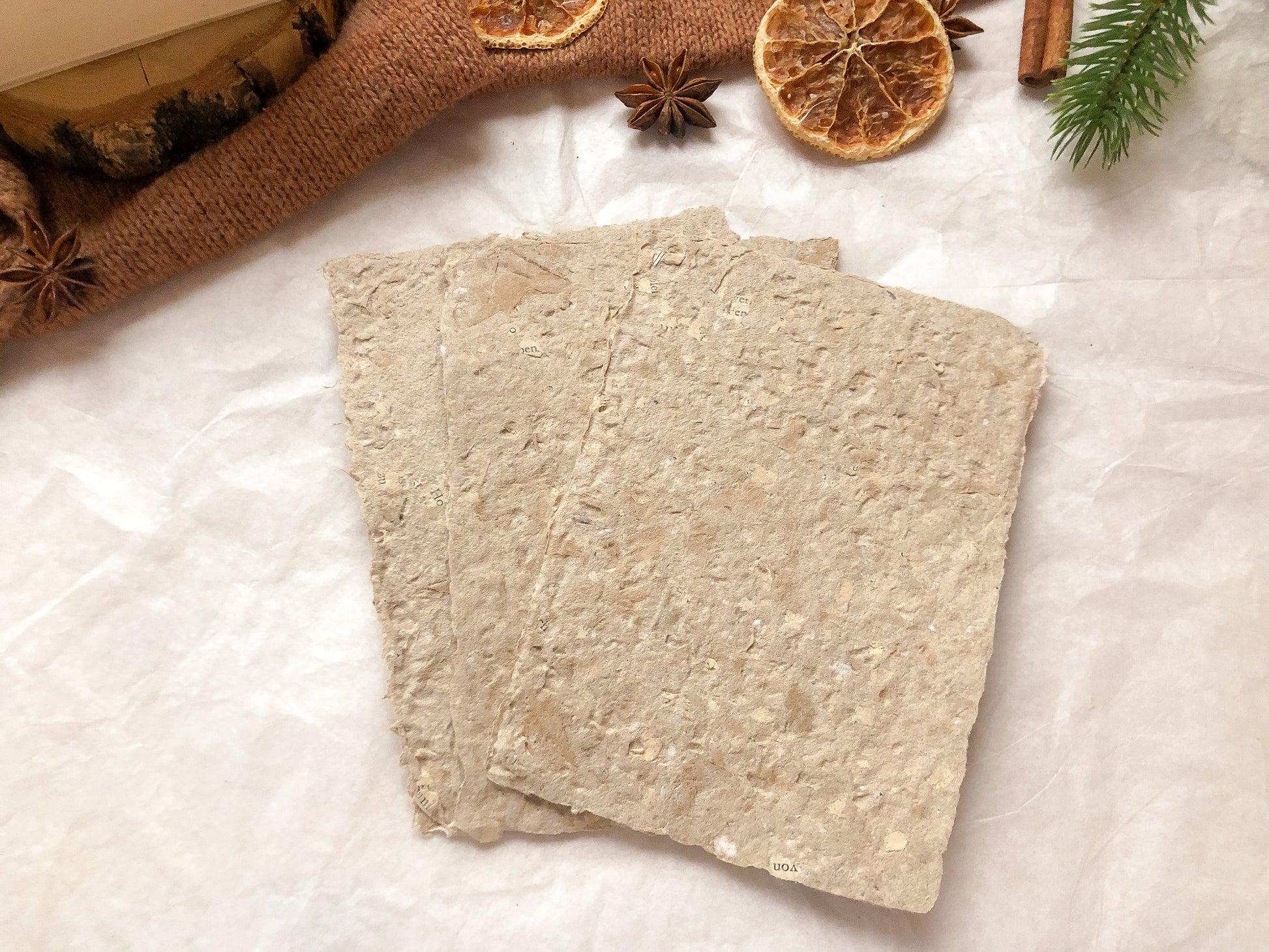 Beautiful, handmade paper in brown, gray, white, green or orange.