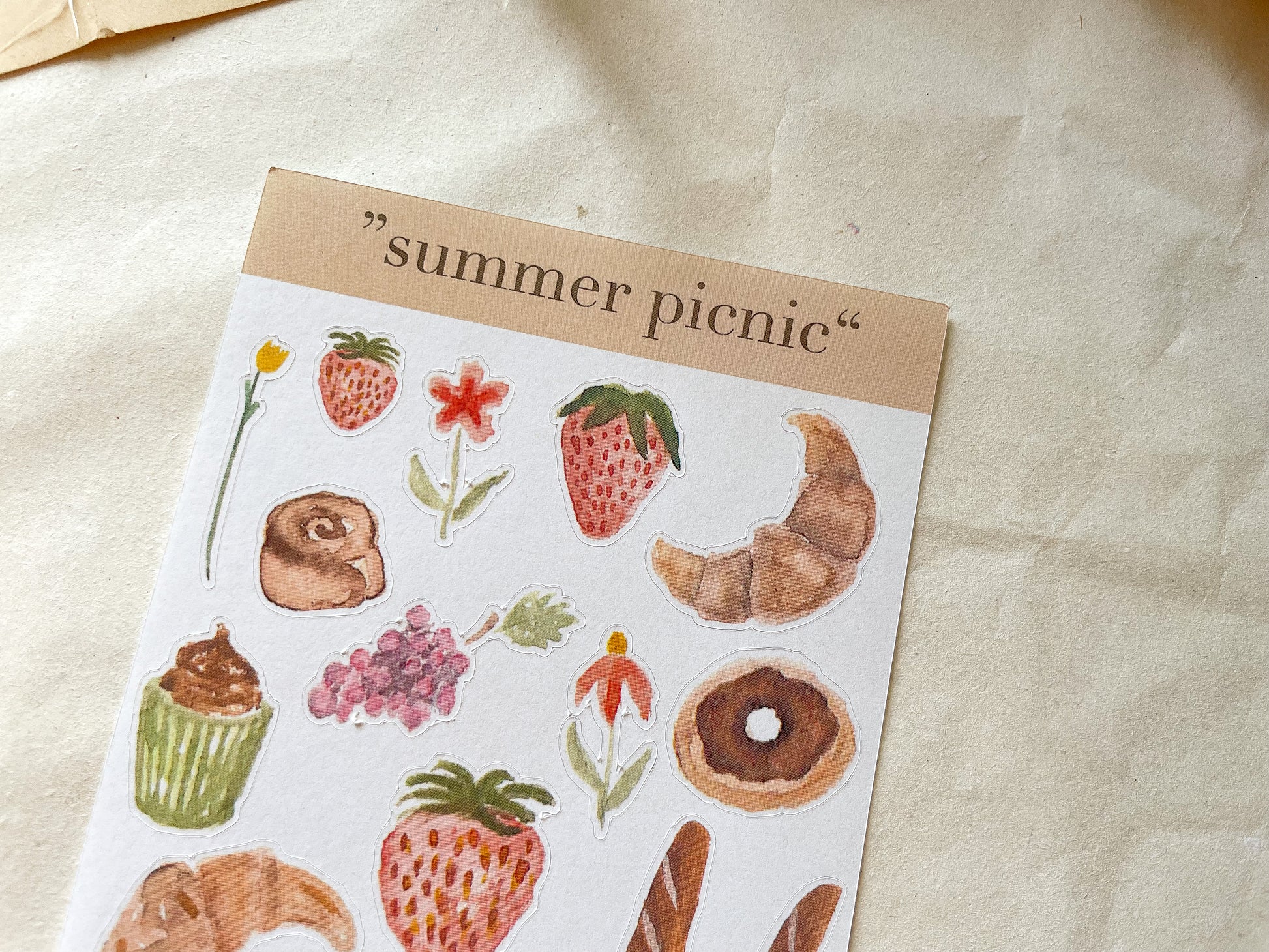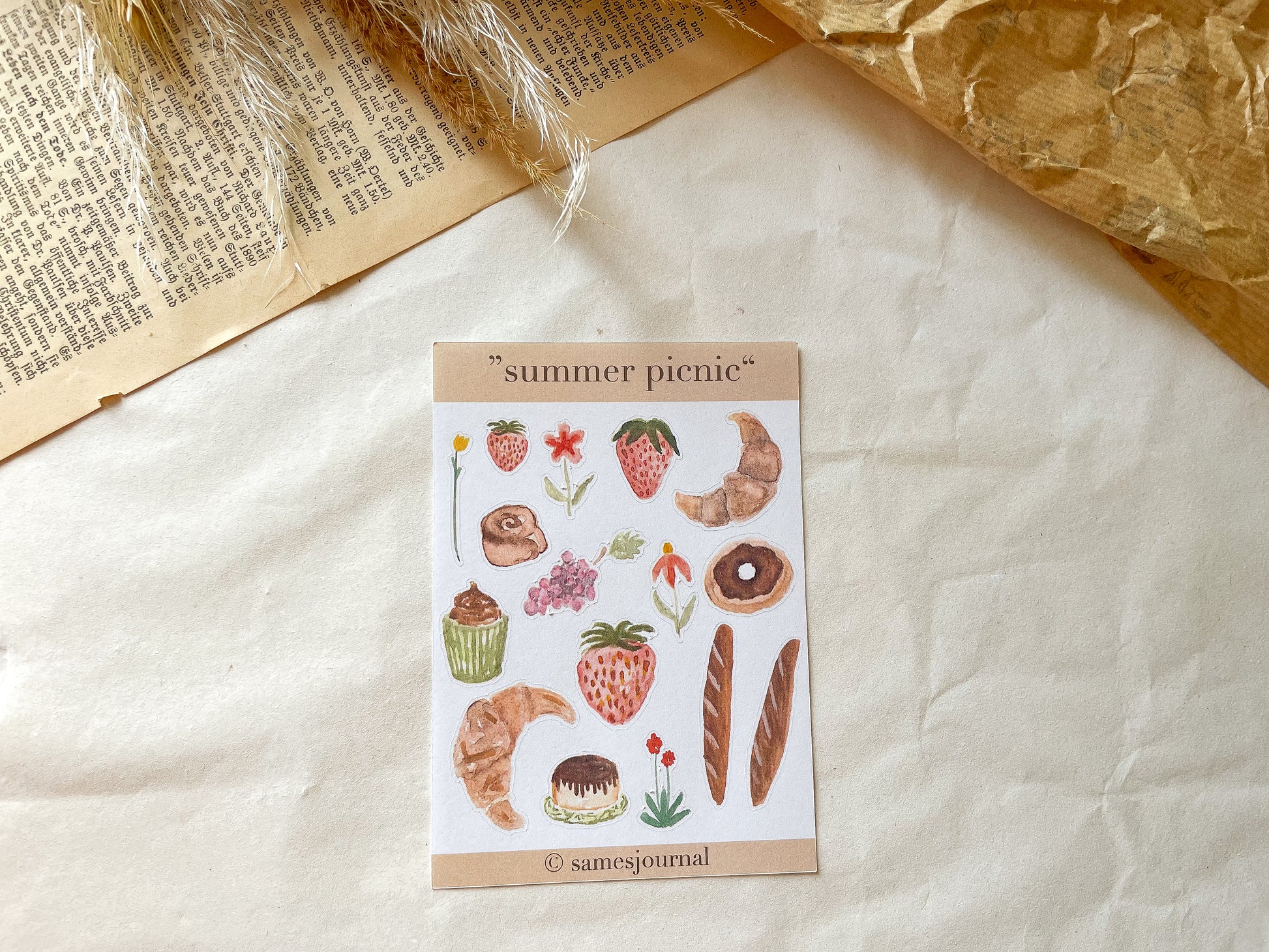 The sticker sheet is approximately 9x13cm in size and is part of my picnic collection! It contains 16 stickers.