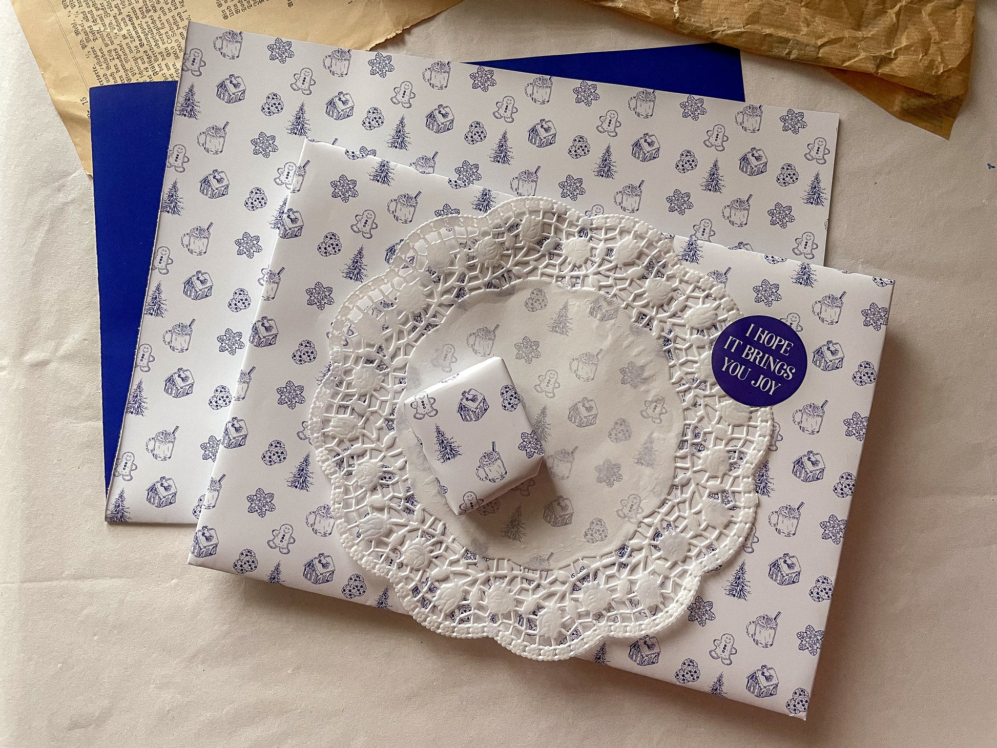 La carte postale est au format A6 et se déplie, le dos est blanc. Il y a aussi une enveloppe marron.