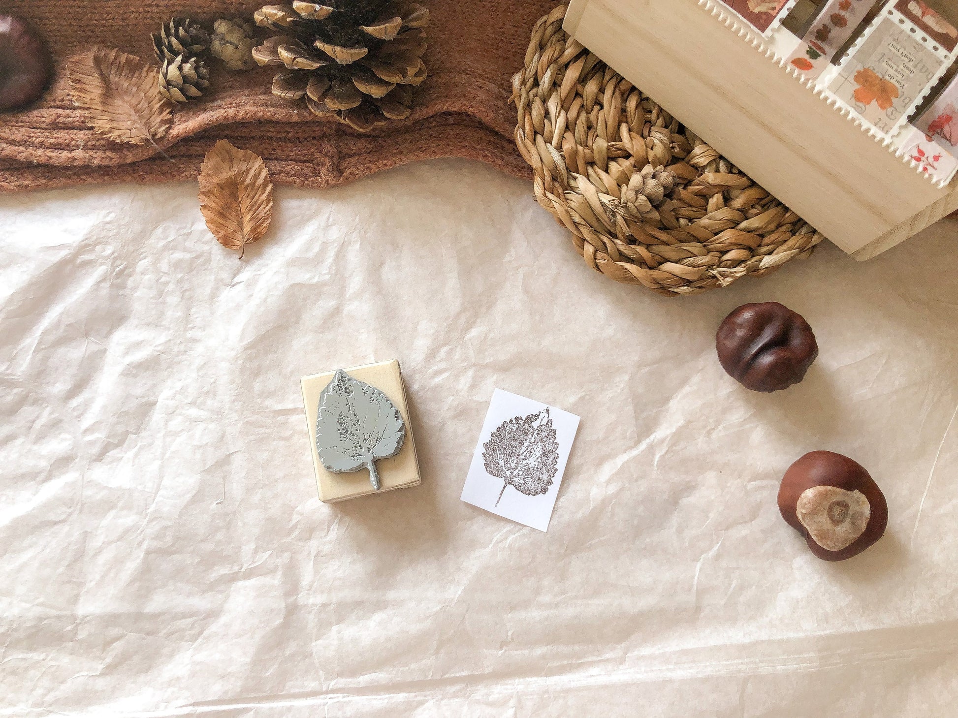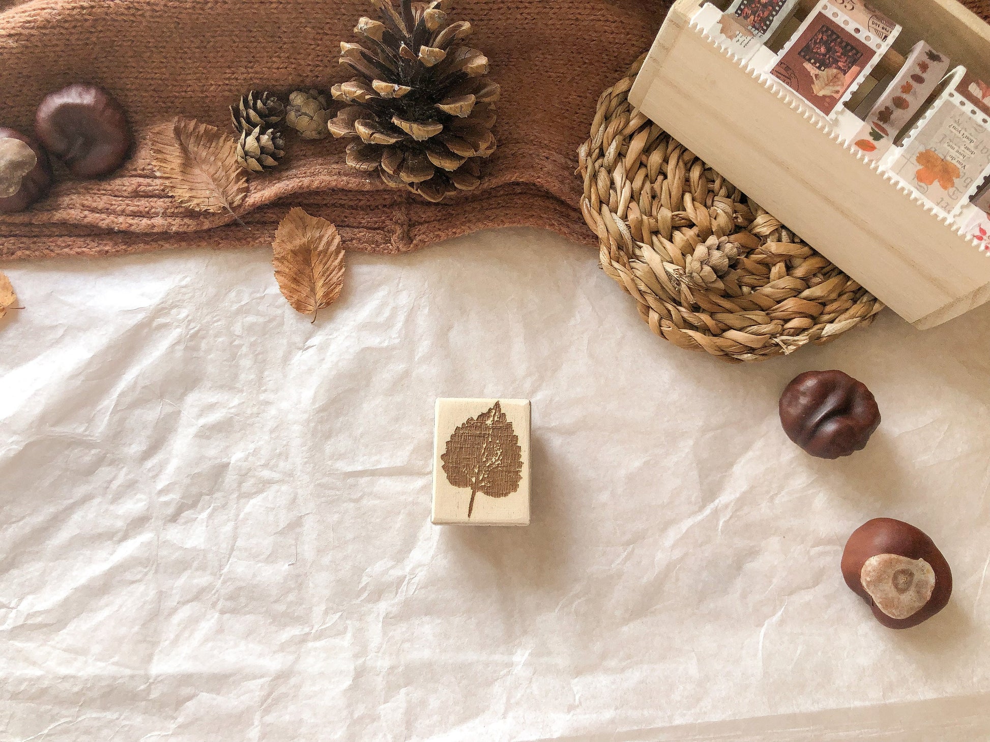 Tampon en bois IV feuille d'automne, automne, tampon, tampon laser, samesjournal
