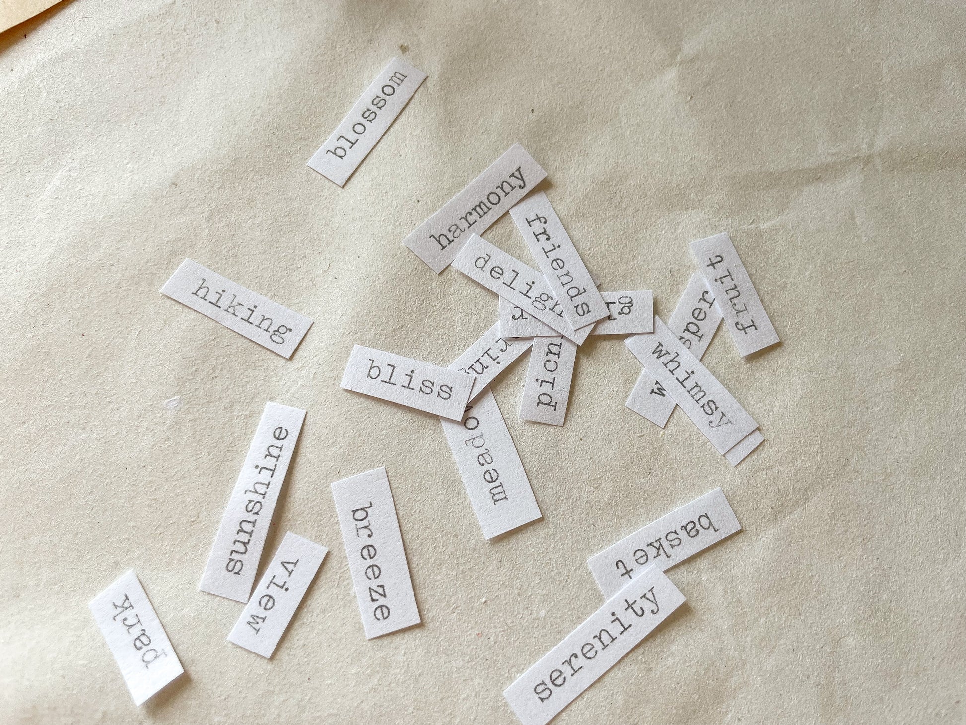 Un ensemble contient 20 morceaux de papier (environ 1 cm de large, la longueur varie).