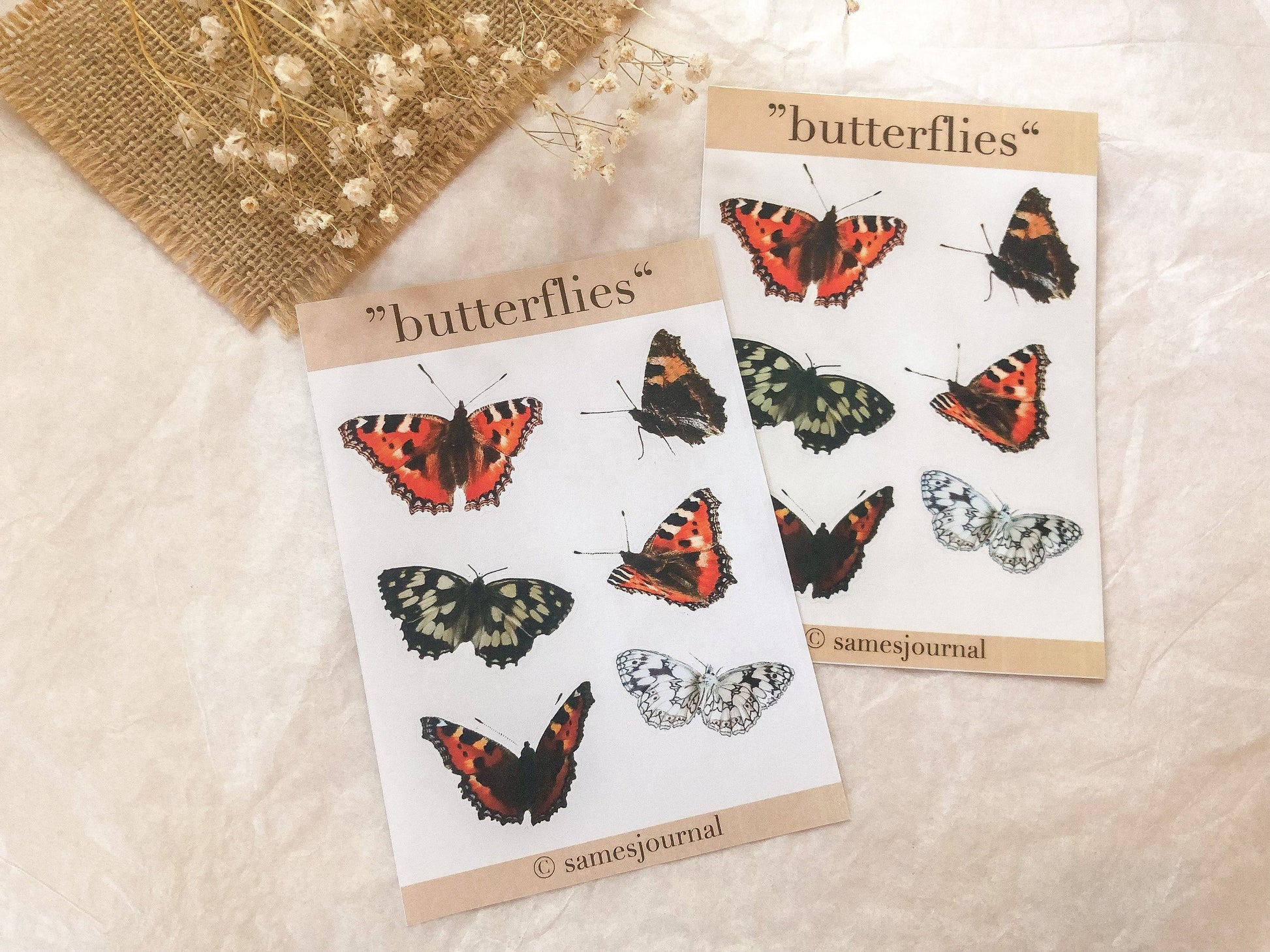 Une feuille d'autocollants mesure 13 cm de haut et 9 cm de large et se compose de 6 autocollants papillons auto-photographiés. Vous pouvez commander les autocollants sur du papier autocollant blanc ou sur du papier autocollant transparent !