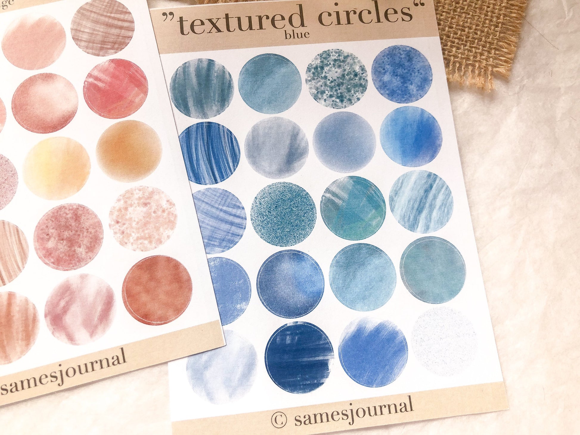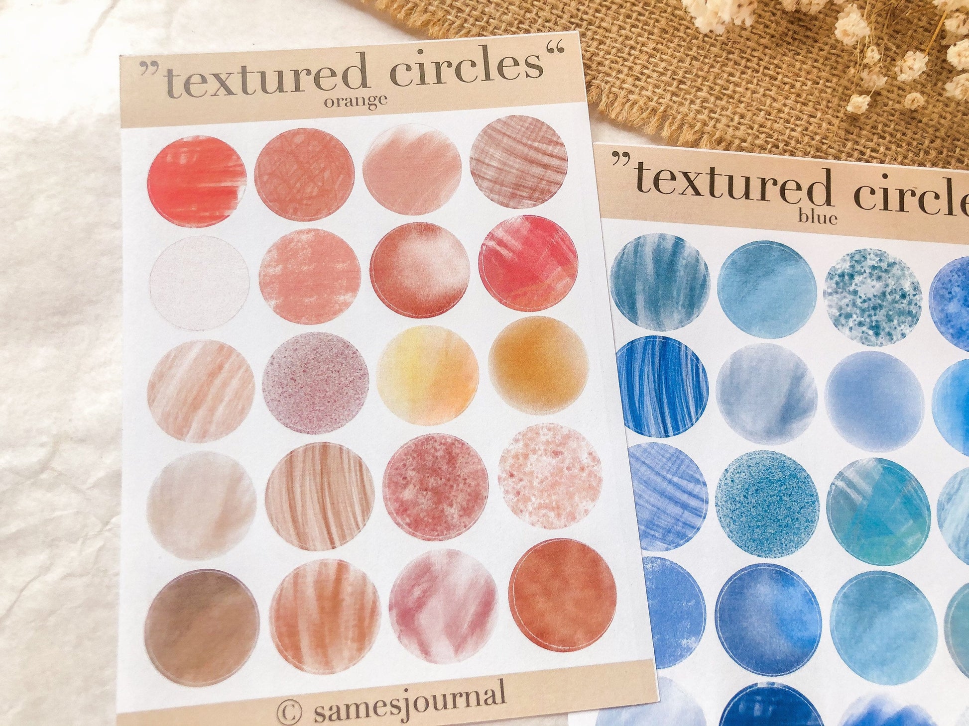 Cercles texturés, orange et bleu, feuille d'autocollants, cercles variés, samesjournal