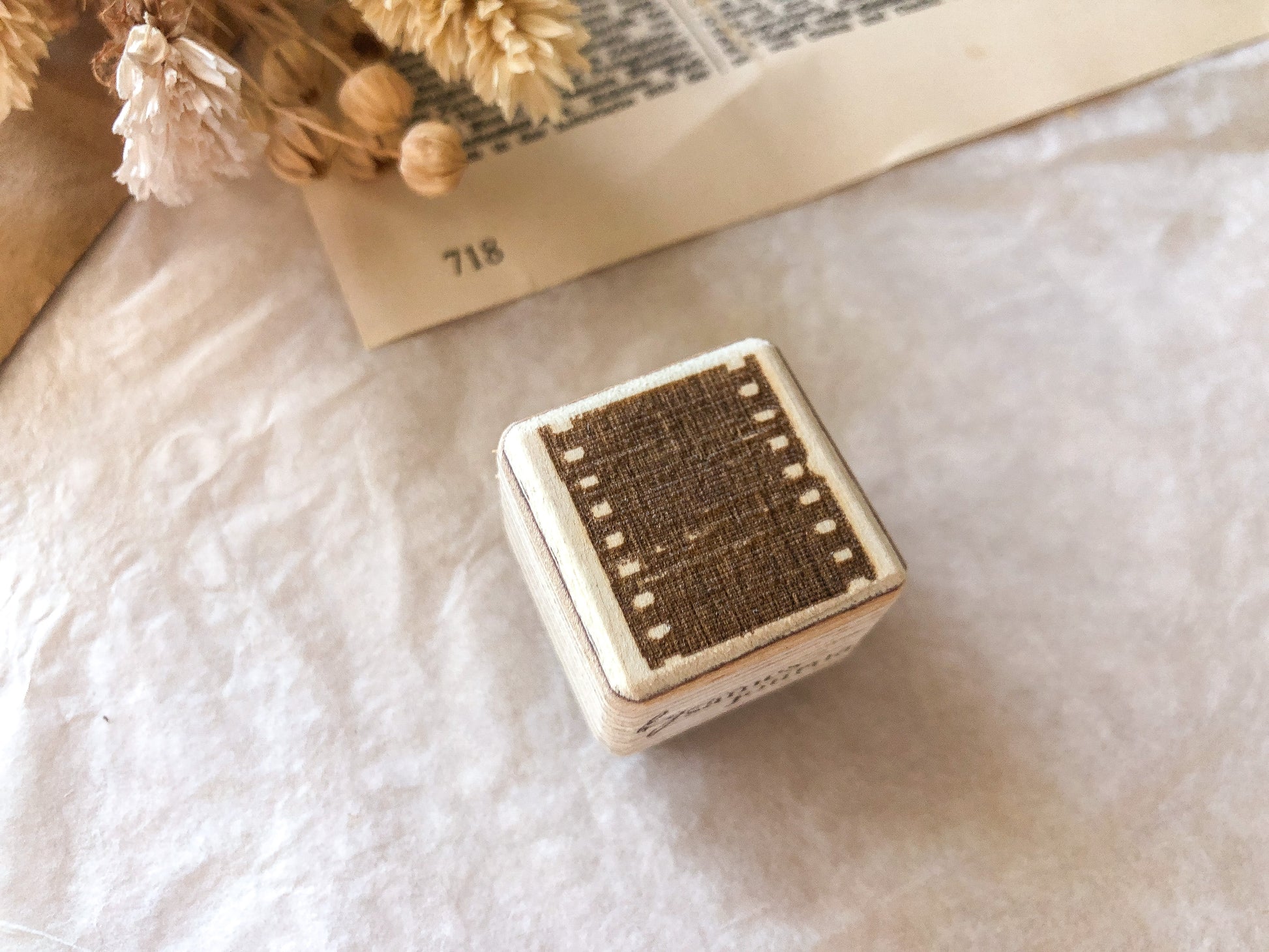 Der Stempel ist 2,5x2,5 cm groß und ist auf einen Holzblock geklebt, dadurch kann man den Stempel direkt benutzen.