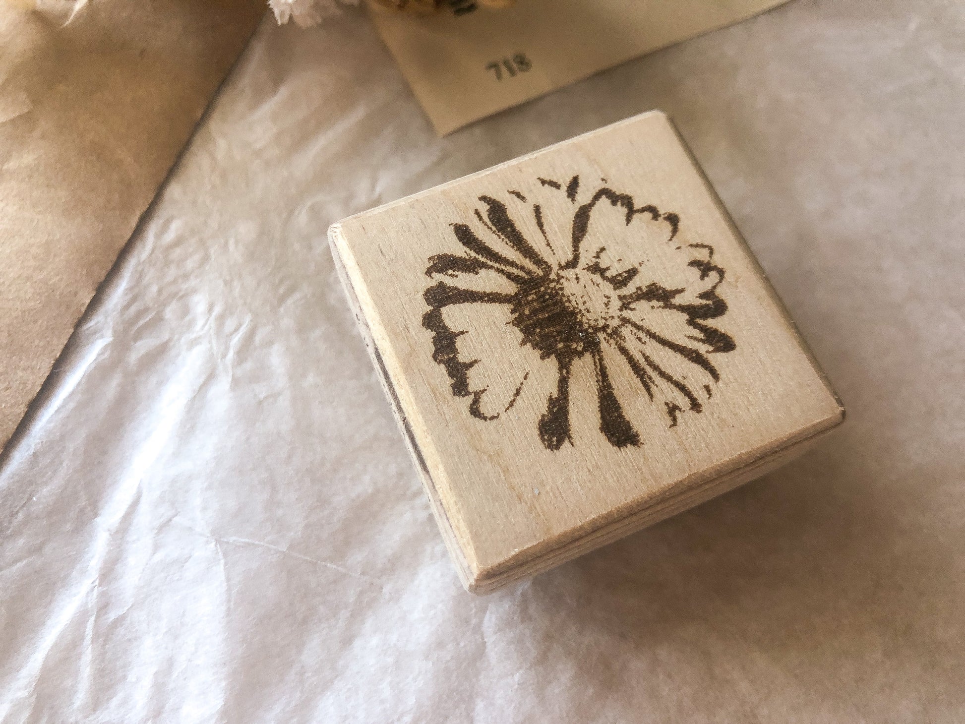 Der Stempel ist 4x4 cm groß und ist auf einen Holzblock geklebt, dadurch kann man den Stempel direkt benutzen.