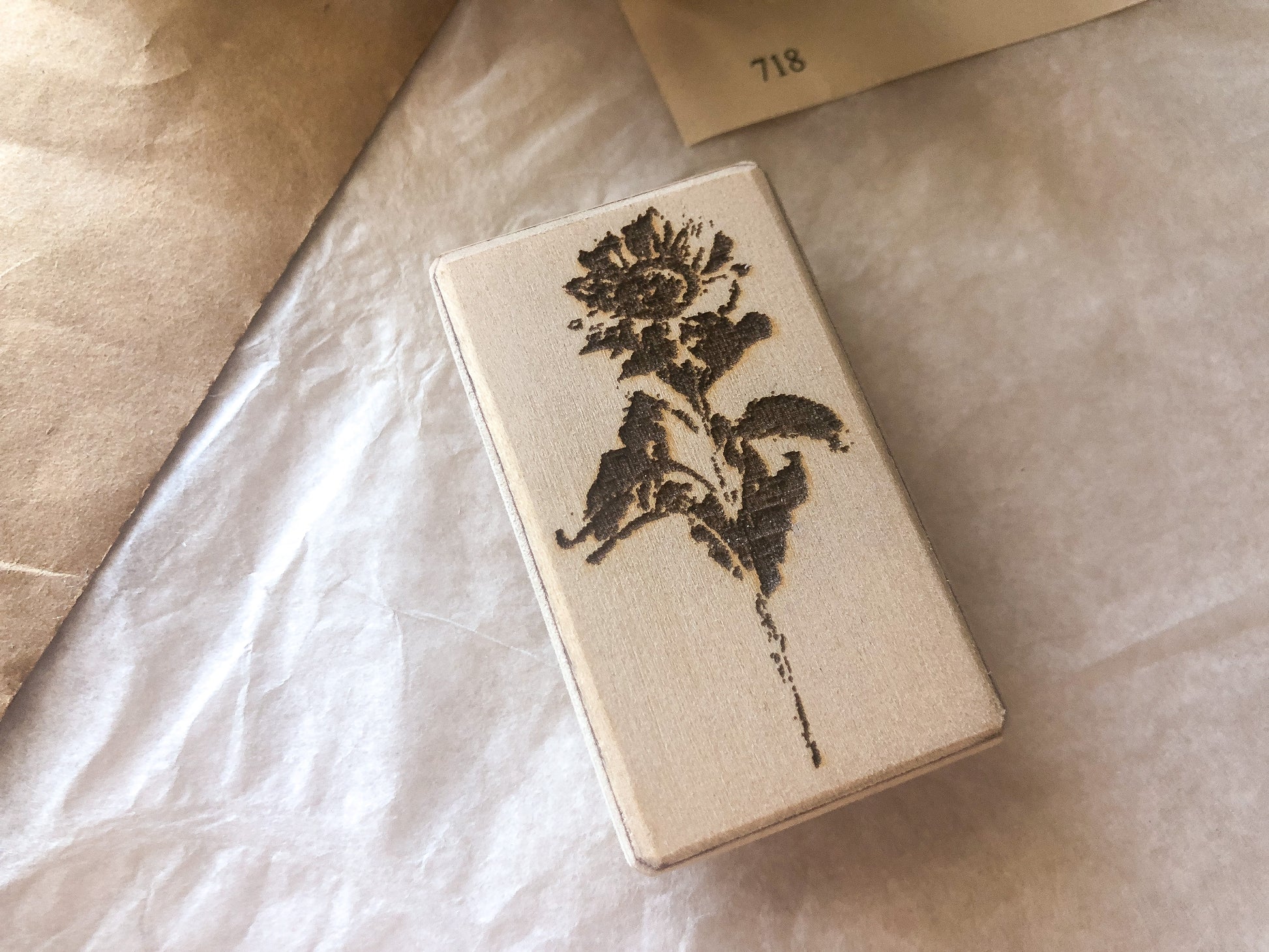 Der Stempel ist selbst designt, das Holz selbst gesägt und alles zusammengesetzt - kleine Ungenauigkeiten können enthalten sein.