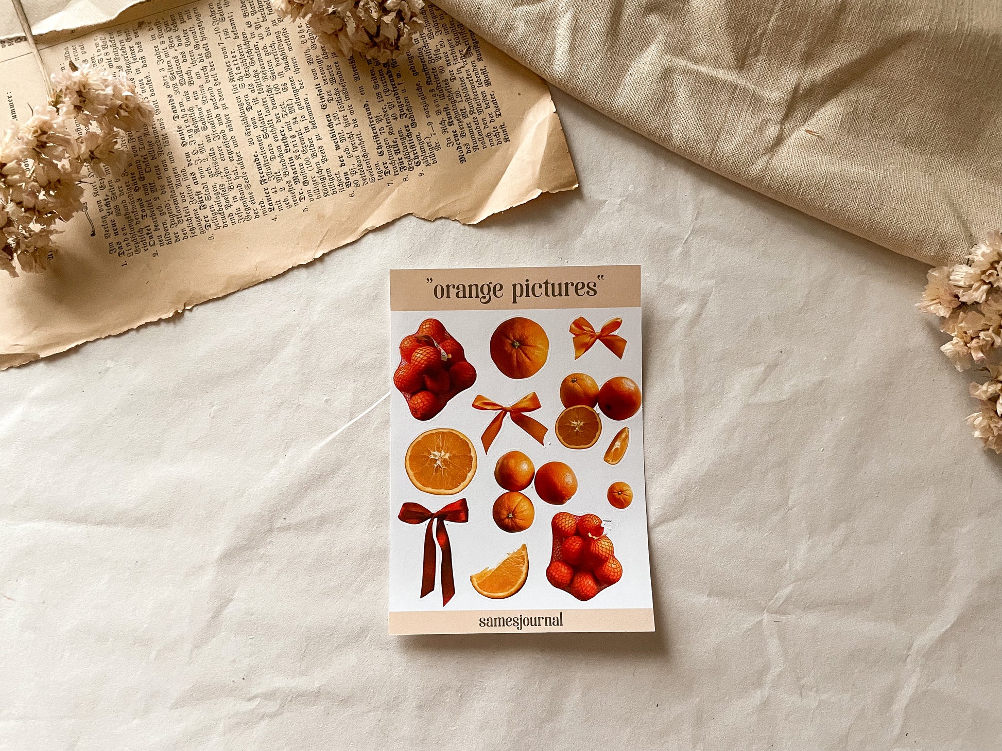 Ein schönes Stickersheet mit Bildern von Orangen und Schleifen, selbst fotografiert.