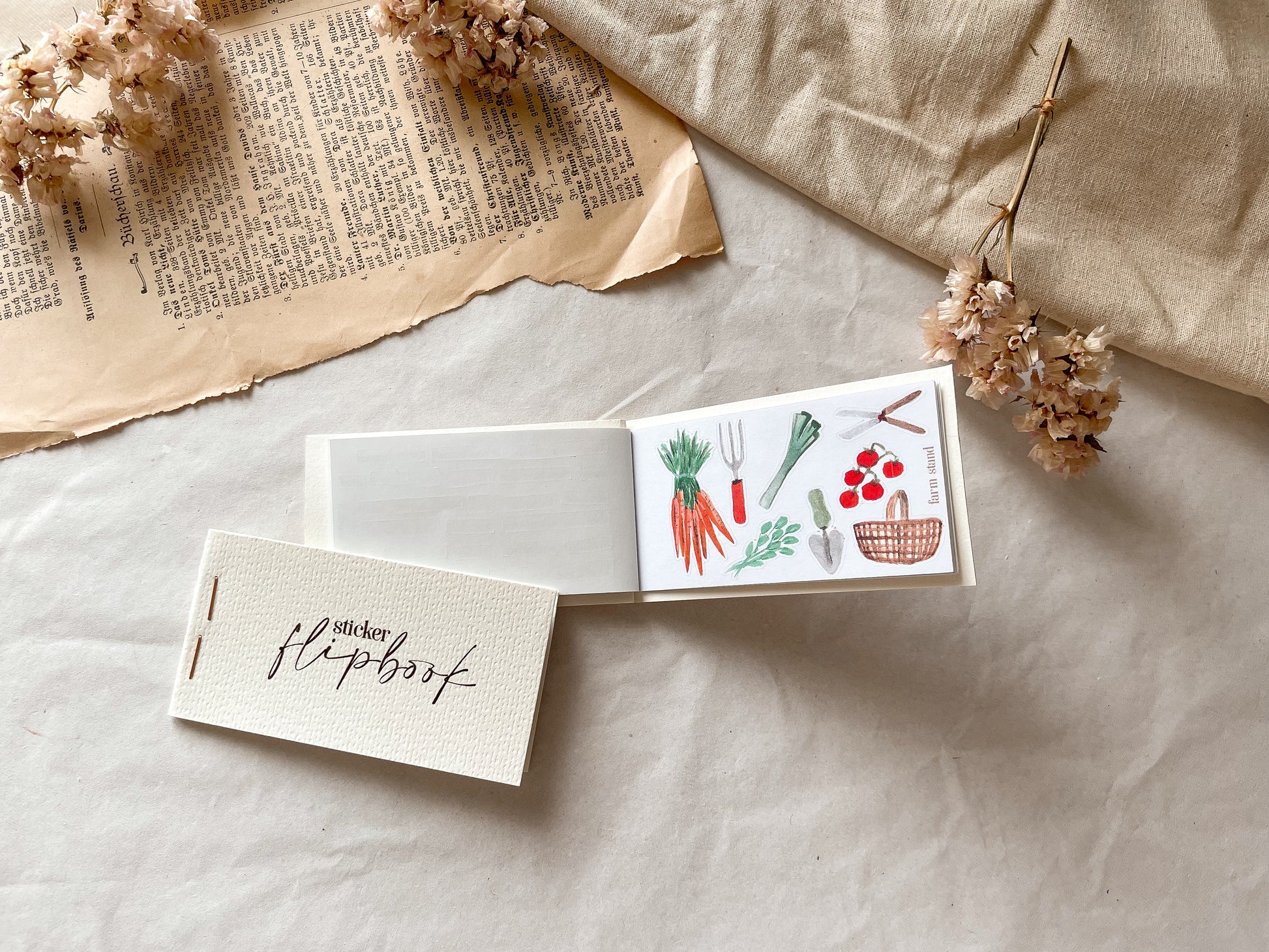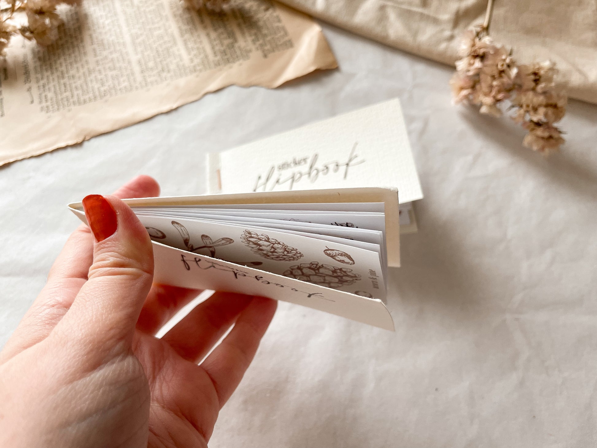 Das Flipbook ist ca. 5,5 cm hoch und 10,5 cm breit und hat sieben kleine Stickersheets (5x10cm) im Inneren. Im Shop gibt es verschiedene Varianten des Flipbboks, du kannst auch schon fertige Flipbboks hier bestellen.